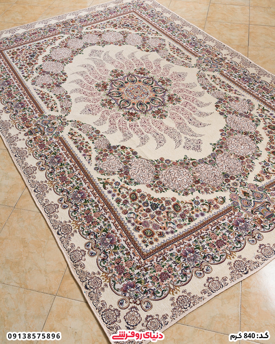 روفرشی مخمل ابریشم بافت سعید کد 840 کرم